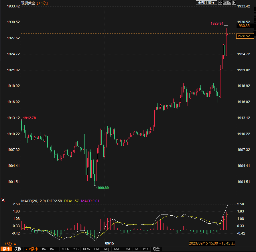 (现货黄金15分钟走势图)