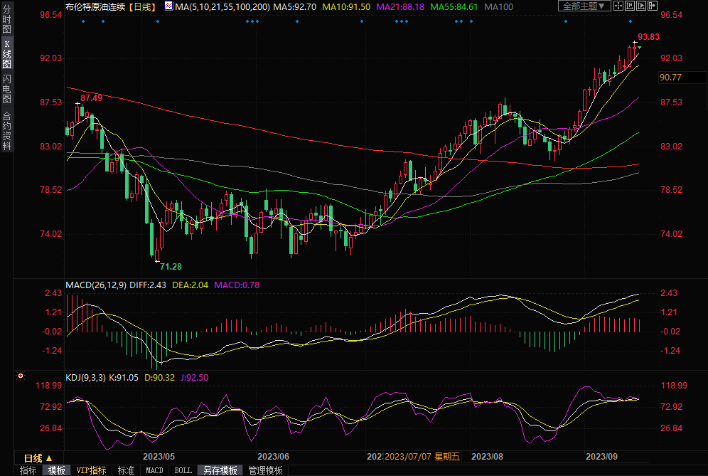 汇通财经APP讯——上周五(9月15日),石油输出国组织(OPEC)成员国的原油产量削减得以延长,对原油市场形成了严格的压力,将美国原油价格推至十个月来的高位,,美国西德克萨斯中质(WTI)原油期货及布伦特原油期货均跃上90美元/桶高位。
