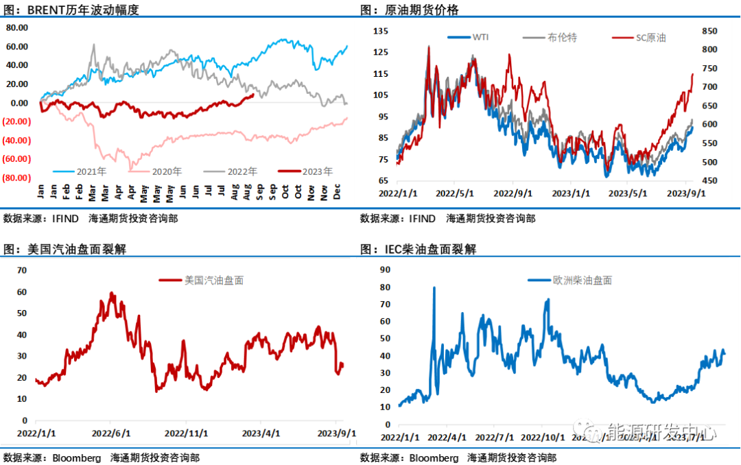 油价强势格局暂时难以撼动,在没有累计足够的利空因素之前油价重心仍有提升空间,但同时高油价也将重新给欧美市场带来通胀回升压力,美国汽油价格升至历史同期最高水平,汽油价格短短八周内上涨了7.8%,出现了罕见的夏末上涨行情,对美国拜登政府的抗通胀行动构成挑战。另外我们也注意到了在三大机构月报中重点提及了供应收缩带来的库存下行压力,对于年内高油价可能对需求的抑制并没有做重点考虑,基本维持了年内原油市场需求端预期,EIA甚至还提升2023年原油市场需求增长预期5万桶/日至181万桶/日,相比之下EIA仍然是三大机构中对原油需求增长最为保守的预测。对于2024年更倾向代表需求方立场的国际能源署跟EIA则都做出了相对保守预测,这也是原油强势拉升之后,后续市场需要关注的变化,目前看虽然原油供应紧张,但下游市场在消化强势油价时非常吃力,如果下游消费被高油价抑制,年底之前市场或会再次出行负反馈表现,这也会吸引包括产业客户在内的逢高卖出操作。