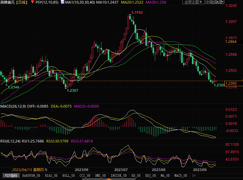 周二(9月19日),英镑兑美元日内持平于1.2382美元,略高于周一盘中触及的6月初以来低点1.2371美元。英国央行周四将召开会议,目前市场上在静待其结果。英国通胀率已从去年10月的41年峰值11.1%降至6.8%,但在主要经济体中仍是最高的,而且降低通胀率的进展要慢得多。路透上周对经济学家进行的调查显示,少数经济学家认为英国央行在今年9月之后还有至少一次加息的空间。而且过去几周对英国央行年内继续升息的预期有所减弱。这当中的主要考虑的是英国经济增长陷入停滞的因素。因此,投机客已削减部分英镑多仓,但幅度不大。周三晚间,美联储先于英央行召开利率会议,如果美联储按兵不动,且对于今后的利率前瞻指引表露鸽派态度的话,要防范英镑/美元产生超卖反弹的风险发生。