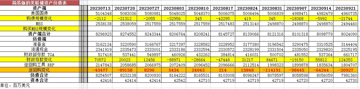 2023年9月21日,美联储照例公布了当周的资产负债表。