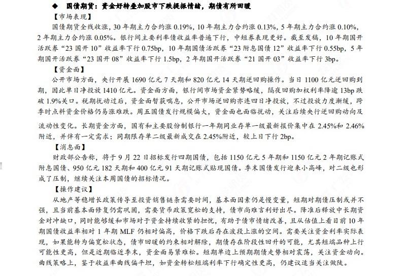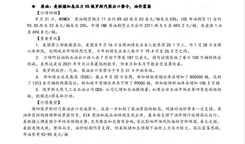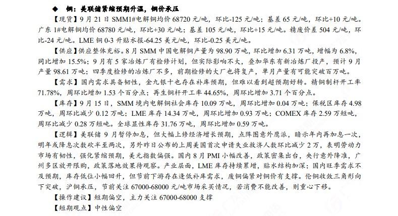 汇通财经APP讯——广发期货发布9月22日早知道,短期单边上预期期债走势相对震荡,关注资金动向,如资金转松短端利率下行确定性更高,仍建议适当关注做陡;铜短期偏空,主力关注67000-68000支撑;铝低位多单持有,小止损;钢材延续偏强走势;焦煤盘面回调后仍会偏强运行,原油高位震荡思路,布油参考92-95美元。