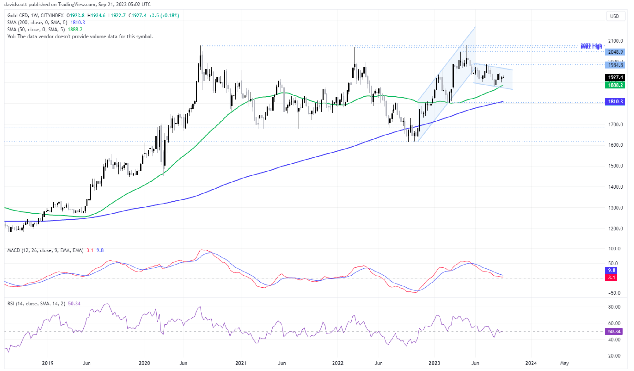 美元价格正在摇摆不定,已飙升至6个月来的高点。与此同时,美国的名义和实际债券收益率也在攀升至几十年来的高点,给风险资产增加了下行压力,尤其是那些提供低或无收益的资产。这是黄金应该在这种情况下受到做空压力的前提。但事实并非如此。