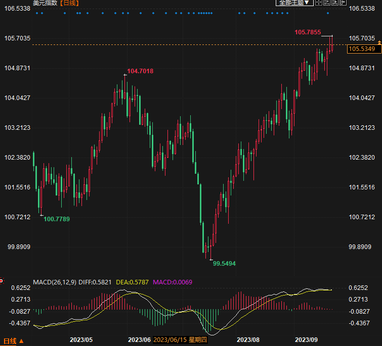 截至发稿,美元指数现报105.47,日内微涨0.07%。