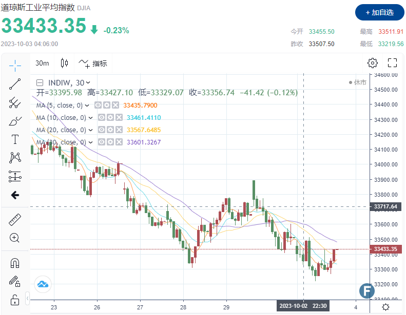 由于投资者权衡美联储需要更长时间维持较高利率的可能性,周一(10月2日),美股收盘,三大股指升跌分化。