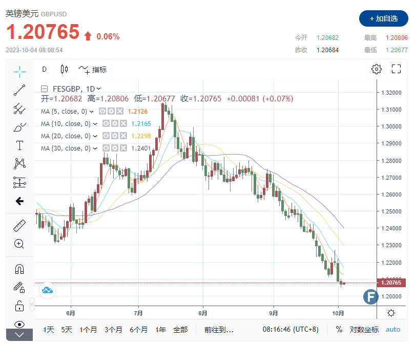 根据FXStreet的分析,英镑兑美元周二跌至1.2053,创下3月份以来的最低水平。但随后收复失地并反弹至1.2100。然而,在美国积极的劳动力市场数据公布后,该货币对再次回调。目前稳定在1.2070附近。