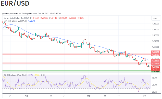 从技术角度来看,欧元/美元收于之前的支撑位 1.0520 下方,并正在向下一个支撑位 1.0360 – 1.0400 移动。