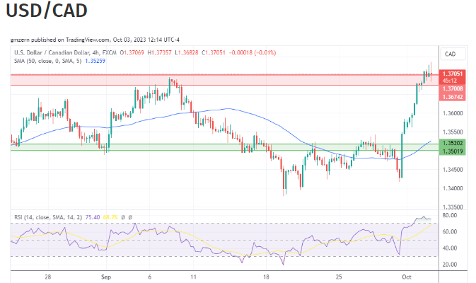 (美元/加元4小时走势图 来源:TradingView)
