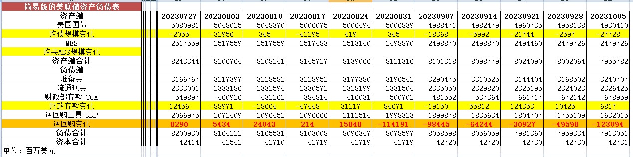 2023年10月5日,美联储照例公布了当周的资产负债表。