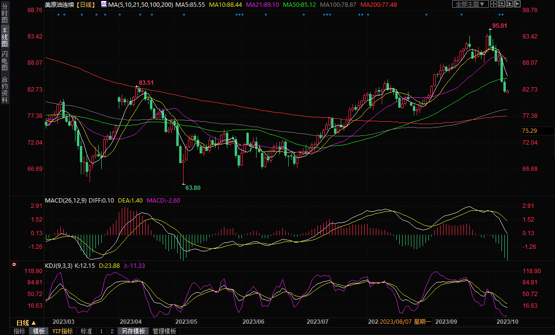 WTI 11月原油期货结算价收跌2.27%,收报82.31美元/桶。