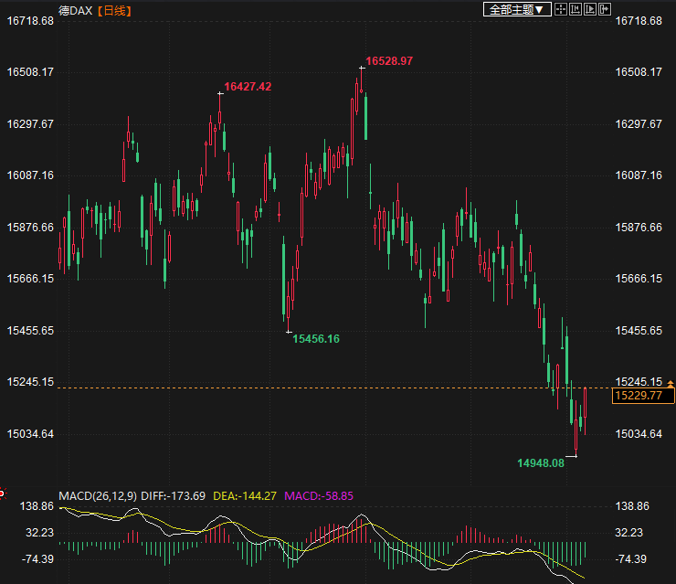 德国DAX30指数收盘上涨163.93点,涨幅1.09%,报15234.15点;