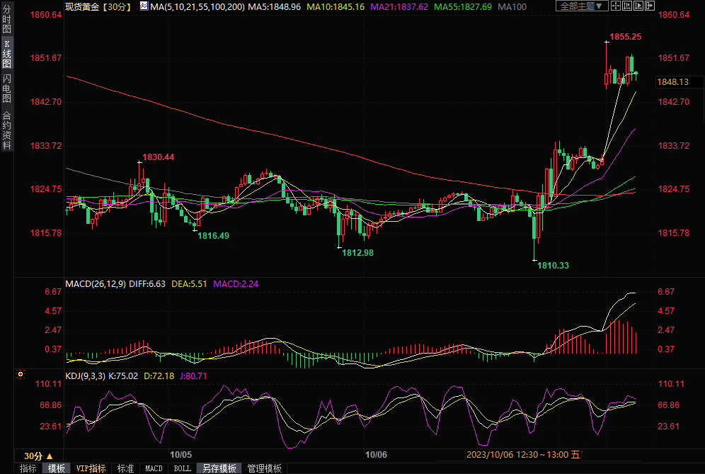 周一(10月9日)亚市早盘,现货黄金大幅攀升,金价一度上涨逾20美元创一周新高至1855.25美元/盎司,目前交投于1848.08美元/盎司。FXStreet分析师Dhwani Mehta周一最新撰文称,因中东危机引发投资者避险,给金价提供上涨动能。