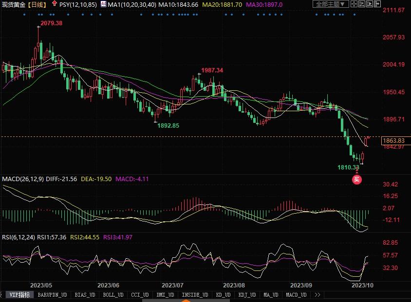 美联储副主席杰斐逊周一暗示,美国长期国债收益率可能会阻止美联储进一步上调短期政策利率,并让金融市场取代美联储正式的货币政策举措。他在美国商业经济协会发表讲话时表示,债券收益率上升导致的金融环境收紧,并在评估未来政策路径时将牢记这一点,在进一步上调指标联邦基金利率时需要“谨慎行事”。与此同时,达拉斯联储主席洛根此前在同一场会议上早些时候发表讲话时表示,近期长期美债收益率的飙升可能意味着美联储再次加息的必要性降低。洛根说:“如果长期利率因期限溢价上升而维持在高位,那么加息的必要性可能就会降低。”巴以冲突引发的避险买盘一度给美元周一走势提供上升动力,但随着美联储官员接连发表鸽派言论,美元指数自日内高点106.59持续下滑。根据芝商所(CME)追踪的数据,投资者认为美联储下月不会再次加息。期货市场定价显示,美联储在11月会议上维持利率不变的机率为88.5%。叠加美联储官员近日来的言论,更是大大降低了再次加息的可能性。为此,周一,金价创下5月以来最大涨幅。此外,在哈马斯袭击以色列后紧张局势加剧后,避险需求增加,也利好金价。总之,近期基本面似乎涌现出一些有利于黄金的消息。