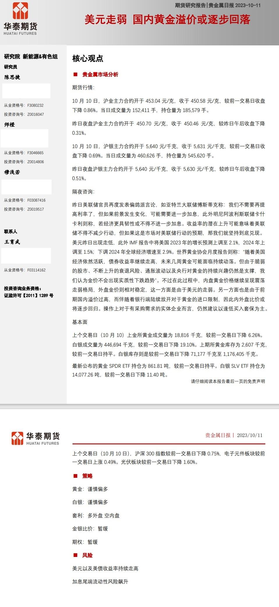 标题:华泰期货10月11日贵金属报告