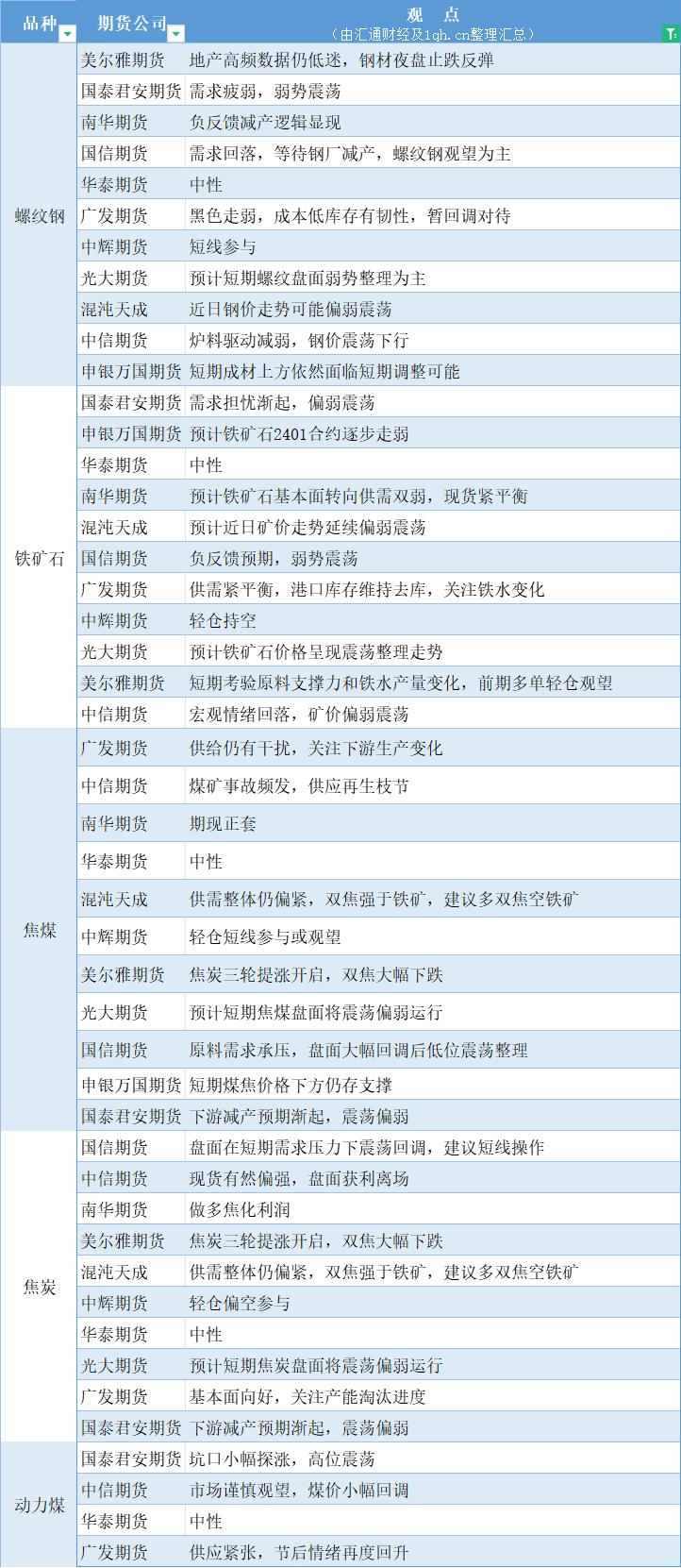 汇通财经APP讯——期货公司观点汇总一张图:10月11日黑色系(螺纹钢、焦煤、焦炭、铁矿石、动力煤等)