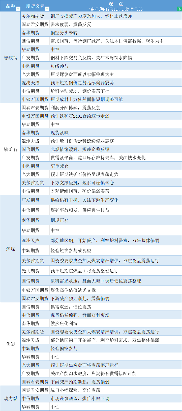 汇通财经APP讯——期货公司观点汇总一张图:10月12日黑色系(螺纹钢、焦煤、焦炭、铁矿石、动力煤等)