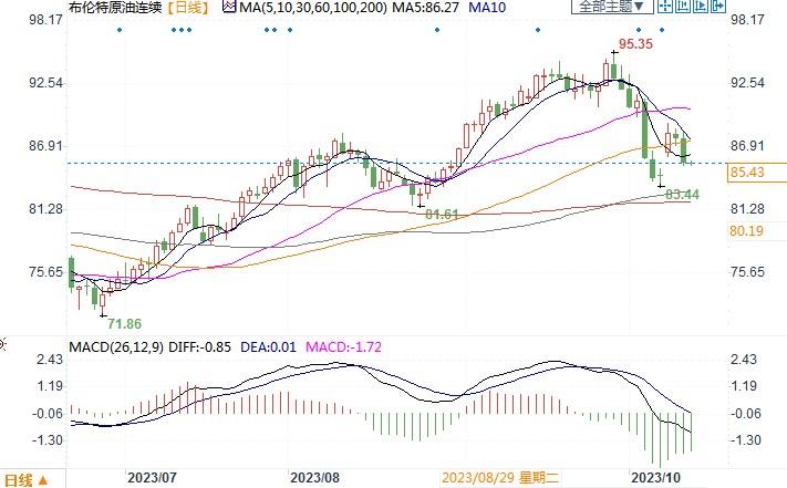 布油周三下跌约2.5%,至85.54美元/桶,而美国WTI原油周三下跌近3%至83.26美元/桶。由于担心以色列和哈马斯之间的冲突可能升级为更广泛的冲突,布油和WTI原油周一飙升逾3.50美元。