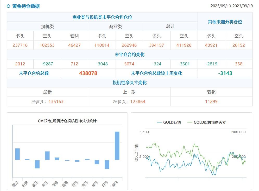 外汇方面:截至2023年10月10日当周,CFTC日元净空头头寸为-99476手头寸;截至2023年10月10日当周,欧元净多头头寸为75532手头寸;截至2023年10月10日当周,英镑净空头头寸为-10048手头寸;截至2023年10月10日当周,CFTC-瑞郎净空头头寸为-16075手头寸。