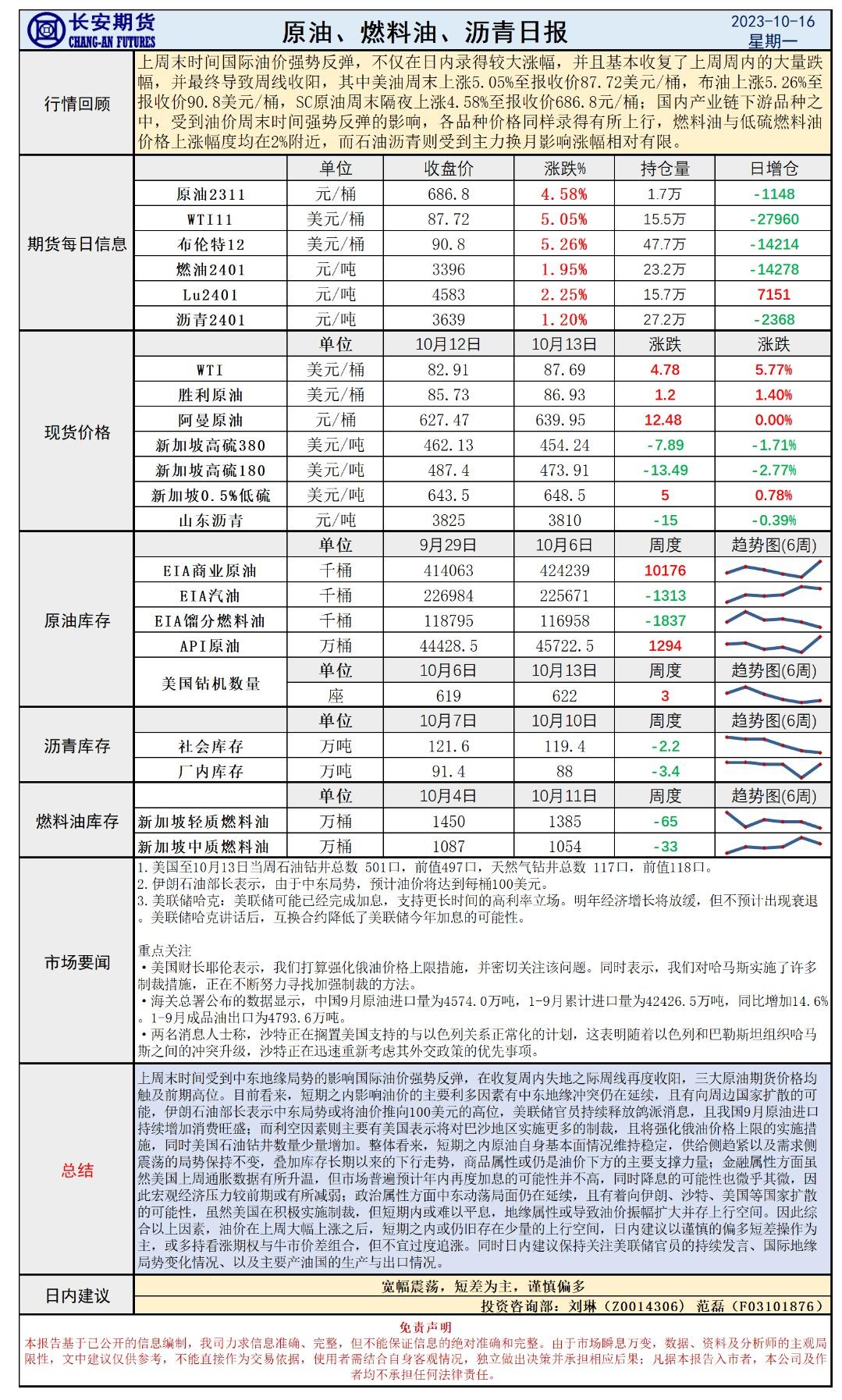 标题:长安期货10月16日原油早评:地缘持续发力,油价强势反弹后或仍有少量动能
