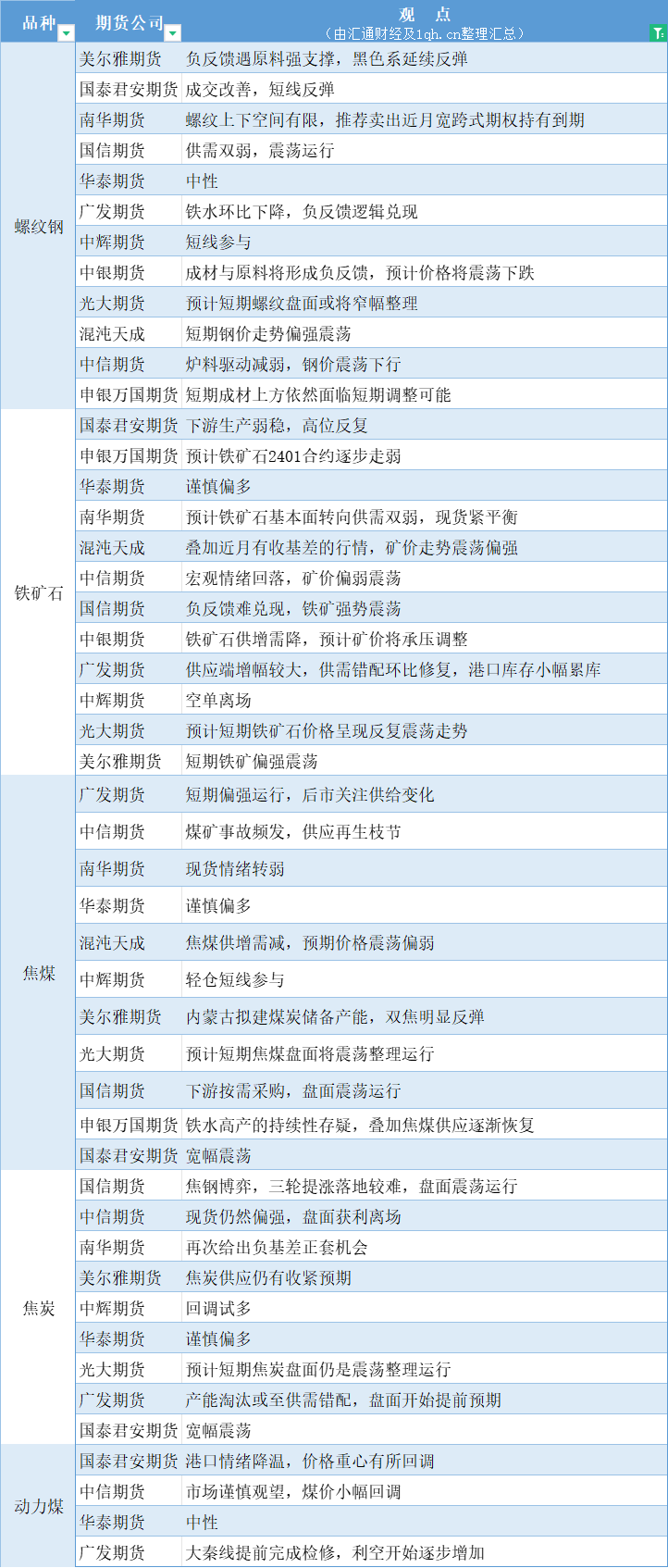 标题:期货公司观点汇总一张图:10月17日黑色系(螺纹钢、焦煤、焦炭、铁矿石、动力煤等)