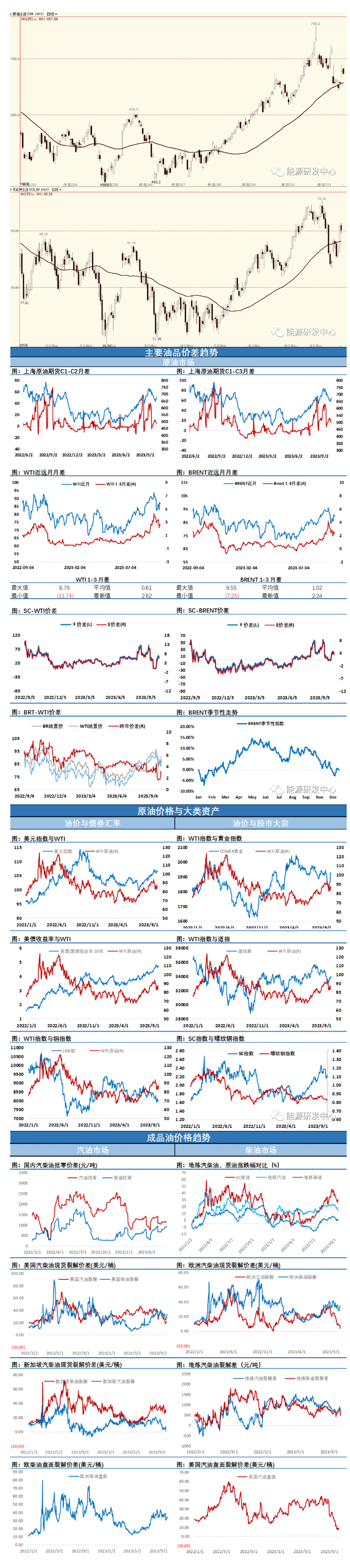 周一油价小幅回落,巴以冲突在各方斡旋之下没有进一步激化,市场情绪略有缓和,来自地缘因素的推力暂时消退,油价周一震荡中小幅回调。但因以色列誓要清除哈马斯,这也得到了美国的支持,因此巴以冲突仍存在反复或者升级的可能。因此地缘冲突给原油带来的5美元溢价并未完全回撤,这显示了投资者对当前巴以冲突进展的评估定价,后续油价的波动仍将围绕巴以冲突进展进行,总体来看围绕巴以冲突的外围利益方均较为克制无意让事件扩大,但任何变动都可能引发油价突发波动,因此地缘因素未得到明确缓解之前预计投资者将保持谨慎,更多是试探性交易。