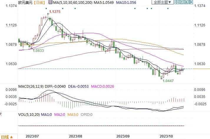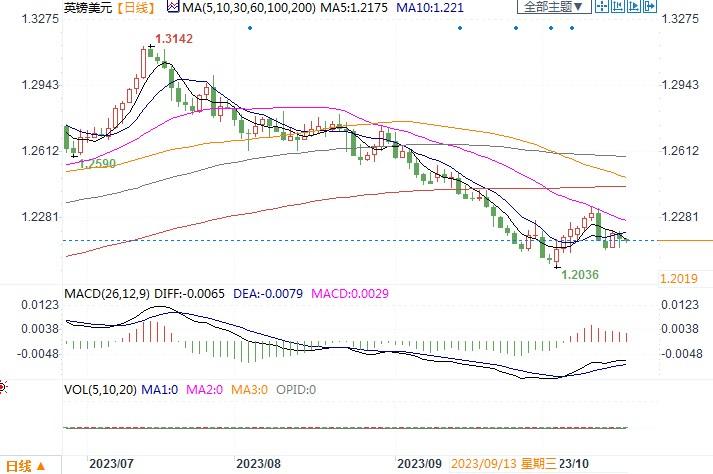 周二(10月17日),欧元/美元上涨0.08%,报1.0569,继续暂时脱离了10月3日触及的2022年12月以来最低的1.0448。周二公布的数据显示美国9月零售销售增幅超过预期,9月零售销售环比增长0.7%。尽管零售销售表现良好,但有经济学家指出,有一些不利因素正在影响着美国消费者,信贷使用增加和信用卡拖欠的早期迹象可能会在一定程度上抑制消费乐观情绪。因此该项数据并未能刺激美元走升。继而投资者将注意力转向了美联储官员本周的讲话,包括主席鲍威尔周四的发言,以寻找有关利率政策的进一步线索。因此本周美联储官员的讲话或会带给汇市一些影响。而欧洲方面,德国ZEW经济研究机构公布10月经济景气指数为负1.1,前值为负9.3,去年同期为负11.4。10月ZEW数据好于路透调查所有26个预估值,令欧元的抛压有所减轻。日线图上,欧元/美元继续企图挣扎在1.05水平之上,若真能守住上述水平,则看看在走势图型上是否能构成双底形态,从而在有利于欧元的刺激因素出现后展开回升之旅。