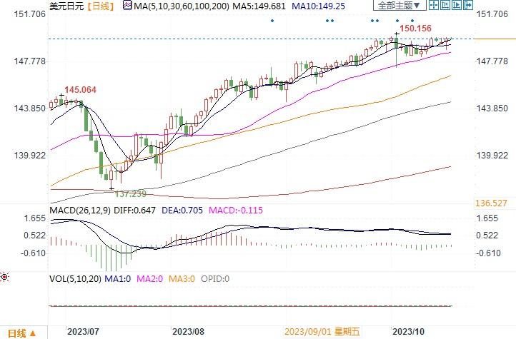 周二(10月16日),在美国公布强于预期的零售销售数据后,美元兑日元一度走升,但由于忌惮来自日本的干预,最终还是驻足于警戒水平150之下,收盘在149.77。周二早些时候,有媒体报导称日本央行正在考虑上调2023和2024财年的核心消费者物价指数(CPI)预期,但维持2025年的通胀预期不变,消息曾促使日元有过短暂飙升。众所周知的原因,由于美日息差的原因,该货币对今年一来一直被作为典型的套利交易选择项。然而当汇价来到日本央行上年的干预警戒水平150时,交易员至今始终未敢做出冲破该警戒水平的尝试。接下来,须密切留意来自美联储主要官员有关货币政策方面的发言。一旦有鸽派的味道流露,则需小心美元/日元冲高无果转而回落的风险发生(一旦发生,波动将会是巨幅的)。毕竟日线图上出现的顶背离迹象,还是不得不防。