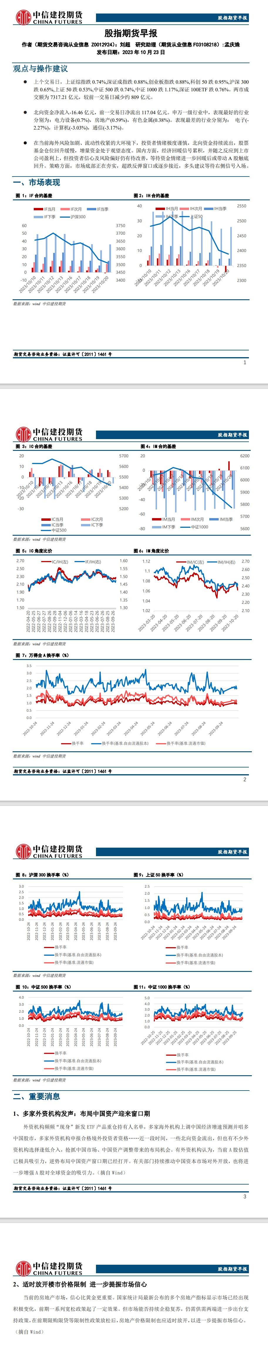标题:中信建投期货10月23日股指期货报告