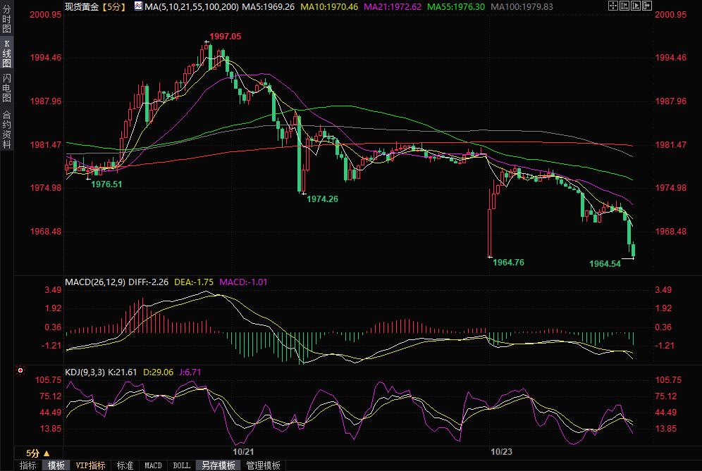 金价大幅跳空低开后反弹受阻,最低触及1964.23美元/盎司,目前交投于1965.89美元/盎司。