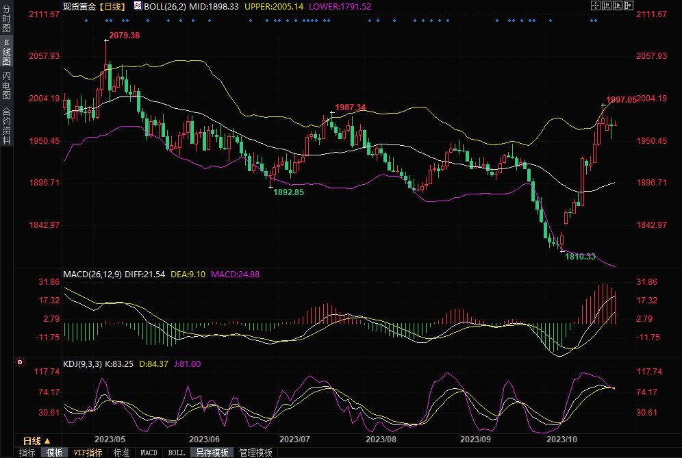 汇通财经APP讯——由于美国10月初步经济数据显示制造业和服务业均扩张,经济活动好于预期,金价周二一度承压至1953美元附近,但由于逢低买盘支撑,金价收复了全部跌幅,周三(10月25日)亚市,金价目前交投于1971.84美元/盎司附近。。