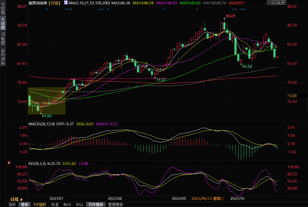 WTI 12月原油期货收跌1.75美元,跌幅2.05%,报83.74美元/桶,盘中一度下跌3.62%至82.92美元/桶,为近一周半新低。