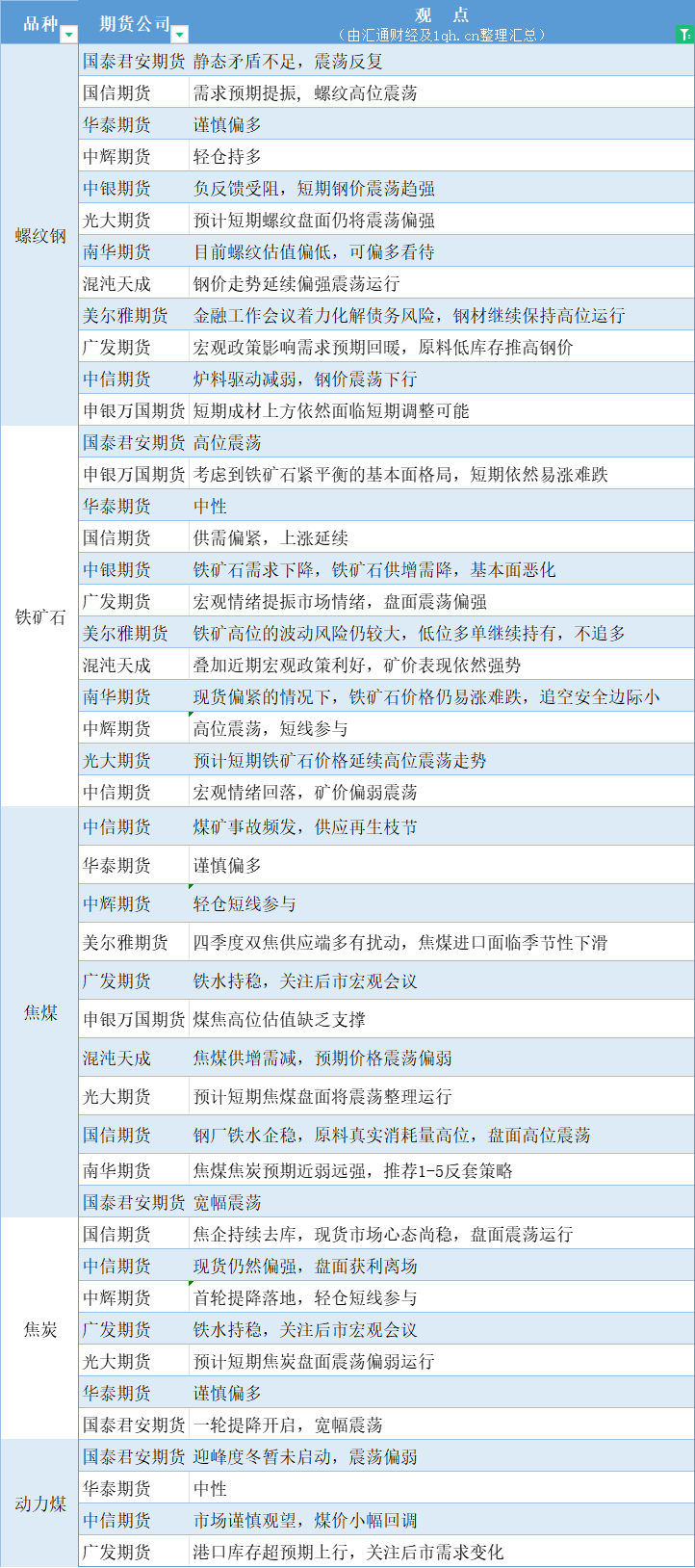 汇通财经APP讯——期货公司观点汇总一张图:11月1日黑色系(螺纹钢、焦煤、焦炭、铁矿石、动力煤等)