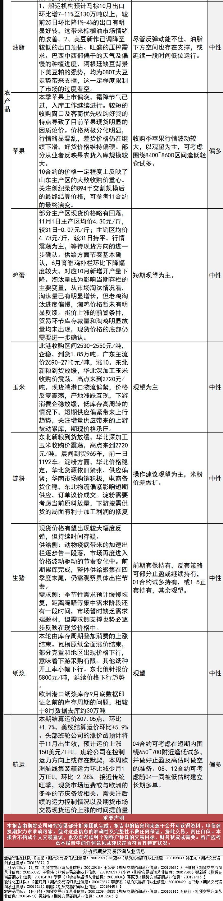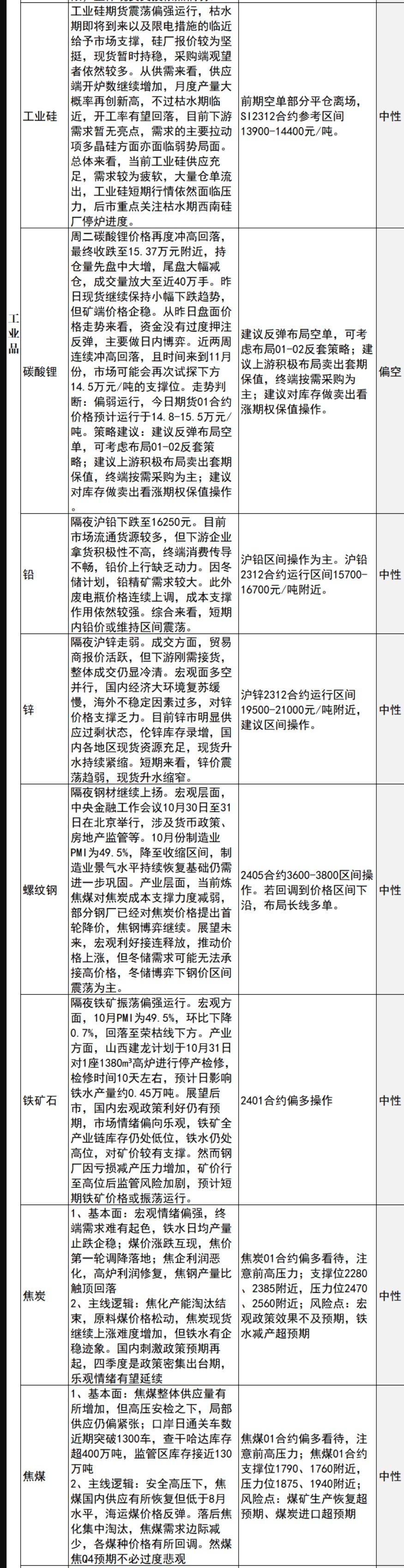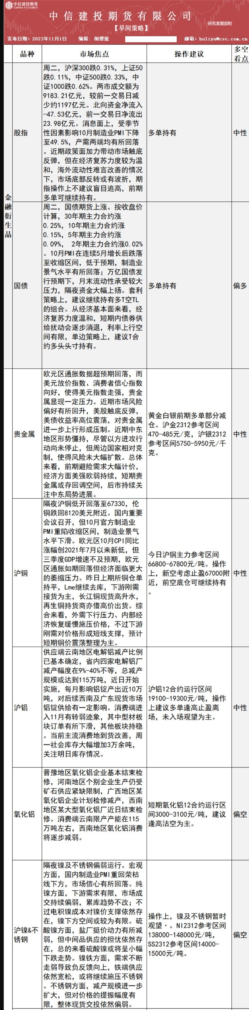 标题:中信建投期货11月1日早间交易策略