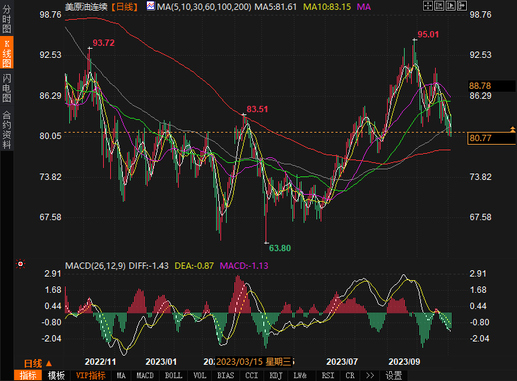 WTI原油下跌1.95美元/桶,跌幅2.4%,收报80.51美元/桶,全周累计下跌5.9%。