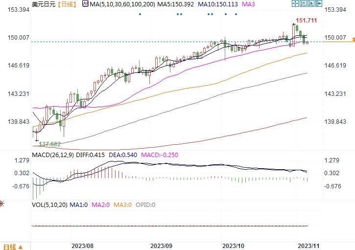 上周五(11月3日),美元兑日元盘中跌至两周低点149.18,尾盘跌0.8%,收盘于149.31。上周早些时候,日本央行调整了收益率曲线控制政策,但调整幅度不及市场预期,日元还因此下跌。然而临近周末的的两个交易日里,由于来自美国的经济数据欠佳,美元下跌,日元被动性的有所回升。周五美国的非农数据显示,10月美国非农就业岗位增加15万个,而非预期的18万,失业率也有此前的3.8%上升为3.9%;9月数据也被下修至增加29.7万个,前值为增加33.6万个。周五公布的另一项经济数据也显示经济放缓:供应管理协会(ISM)的数据显示,10月美国服务业活动连续第二个月放缓。非制造业采购经理人指数(PMI)从9月的53.6降至51.8,创五个月新低。服务业PMI自8月升至六个月最高后一直在下降。美国经济数据的变化,再次证实了美联储不应再次加息的观点。为此,美元在上周五出现大幅下挫。市场目前消化的12月加息的可能性已不到5%,而周四晚些时候消化的可能性接近20%。尽管日本央行在结束宽松货币政策道路上比较拖沓,但架不住美元若因结束加息周期预期提升而不断下行所带来的间接刺激,日元或许会获得进一步反弹的机会。日线图上,日元虽然连续三个交易日出现反弹回升行情,但仍旧未能彻底修复上周日本央行利率会议后产生的跌幅。目前美元/日元初步支撑在149.00水平,技术指标虽趋向下延展,但欠缺力度。日元最终走向还是要看日本政府和央行在结束宽松货币政策上是否能有更激进的举措。