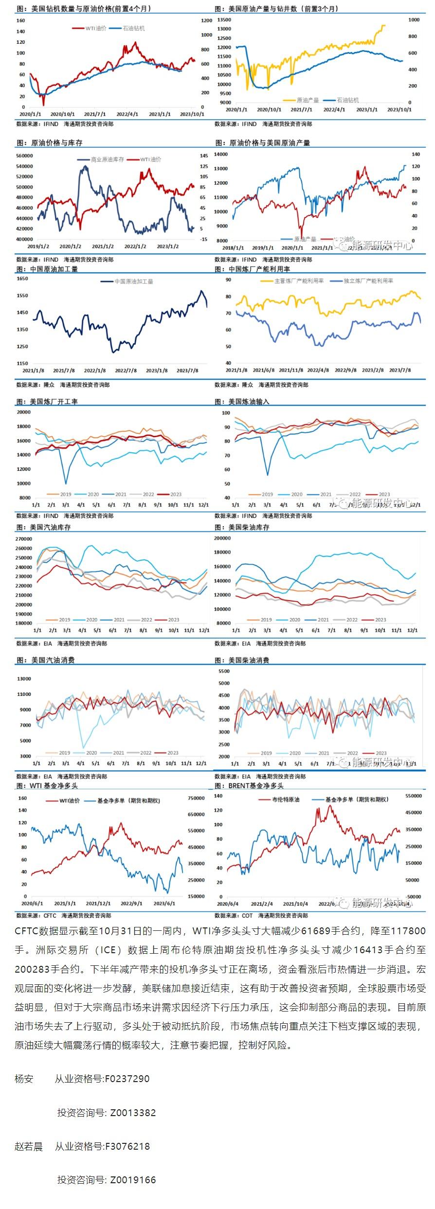 汇通财经APP讯——周五原油再度大跌,完全回吐了周四涨幅,并继续刷新了地缘冲突之后的低点,连续第二周收跌, WTI原油距离80美元关口一度只差0.1美元,多头在关键支撑区域抵抗表现的非常挣扎,运行至此经历了10个多月的多空争夺,原油在年线上收出了一根非常夸张的长影响十字星,对于原油市场来说这是极其混乱的阶段,。过去一周油价连续的快速大起大落,地缘因素与宏观因素交织下,投资者很难对油价形成稳定的观点。巴以冲突的出现改变了油价油价运行节奏,油价一度在地缘冲突注入的溢价下从10月初低点反弹近10美元,而随着地缘影响逐渐减弱,油价又回吐了因地缘因素带来的涨幅,美国国务卿布林肯周五明确表示,美国决心不让这场冲突出现第二或第三个战线。地缘失控风险不断减小,但带来的不确定性仍在影响市场,而过去一周宏观层面的变化同样让投资者判断后市产生了犹豫,虽然加息压力大为缓解,但是中国、美国、欧洲不及预期的经济数据带来的担忧还是盖过了积极因素,油价周线最终大幅收跌。投资者对油价的判断明显处在不稳定阶段,这一点在过去的二周时间内投资者体会尤其明显,油价短周期内急速的大起大落大大提升了投资者交易难度。