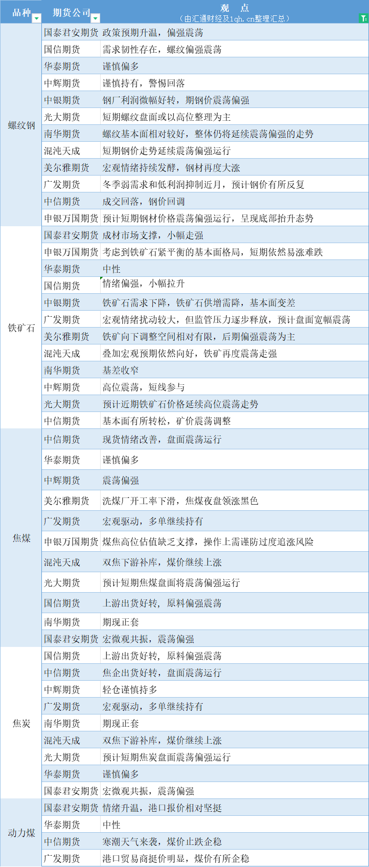 汇通财经APP讯——期货公司观点汇总一张图:11月9日黑色系(螺纹钢、焦煤、焦炭、铁矿石、动力煤等)