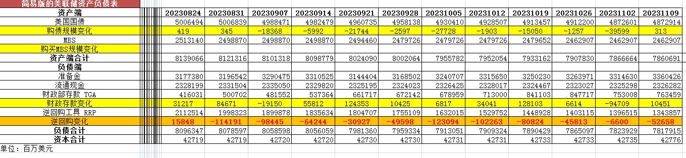 2023年11月9日,美联储照例公布了当周的资产负债表。