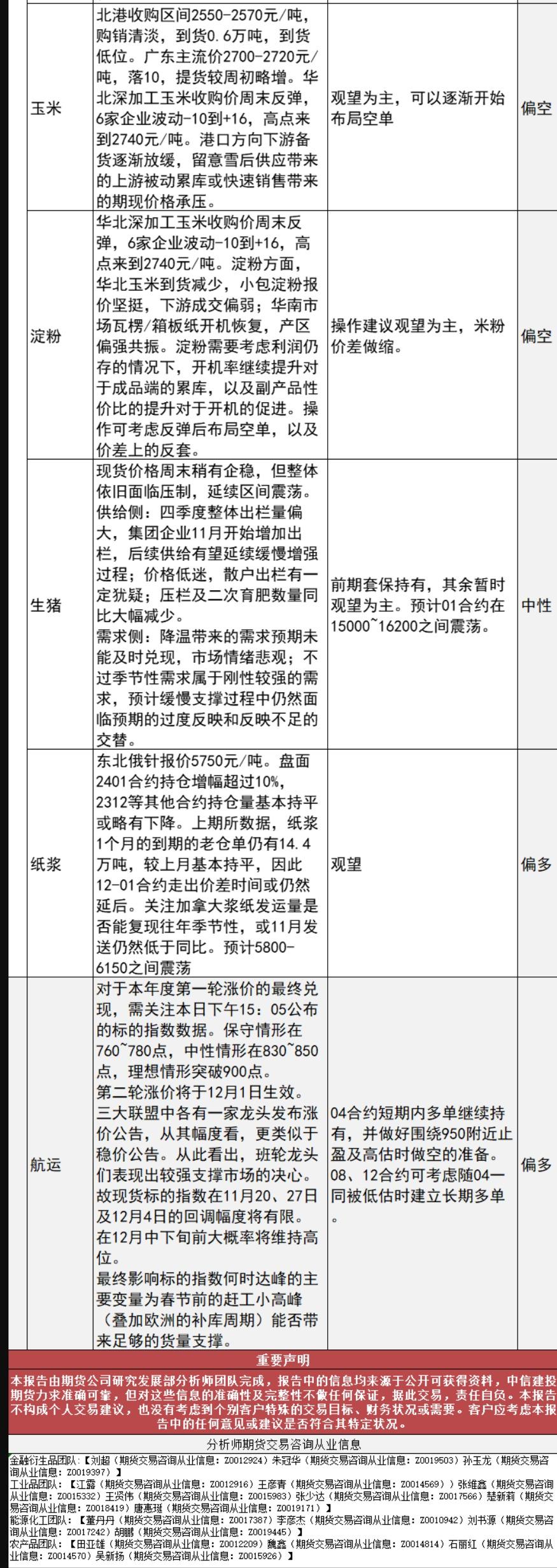 以下为中信建投期货11月13日对贵金属、能源化工、黑色建材、煤炭、有色金属、农产品期货交易提醒和建议。