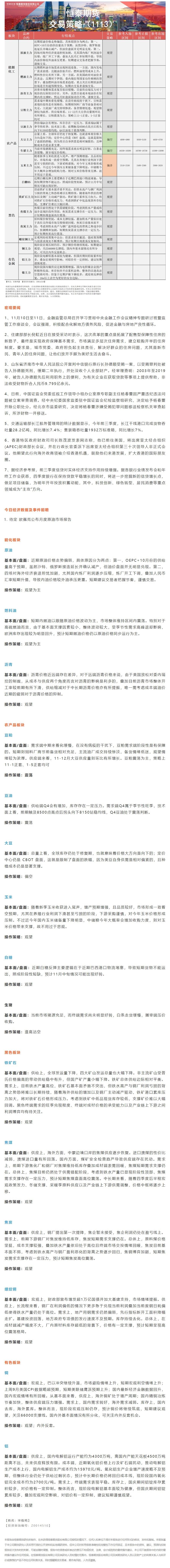 标题:恒泰期货11月13日早盘交易策略