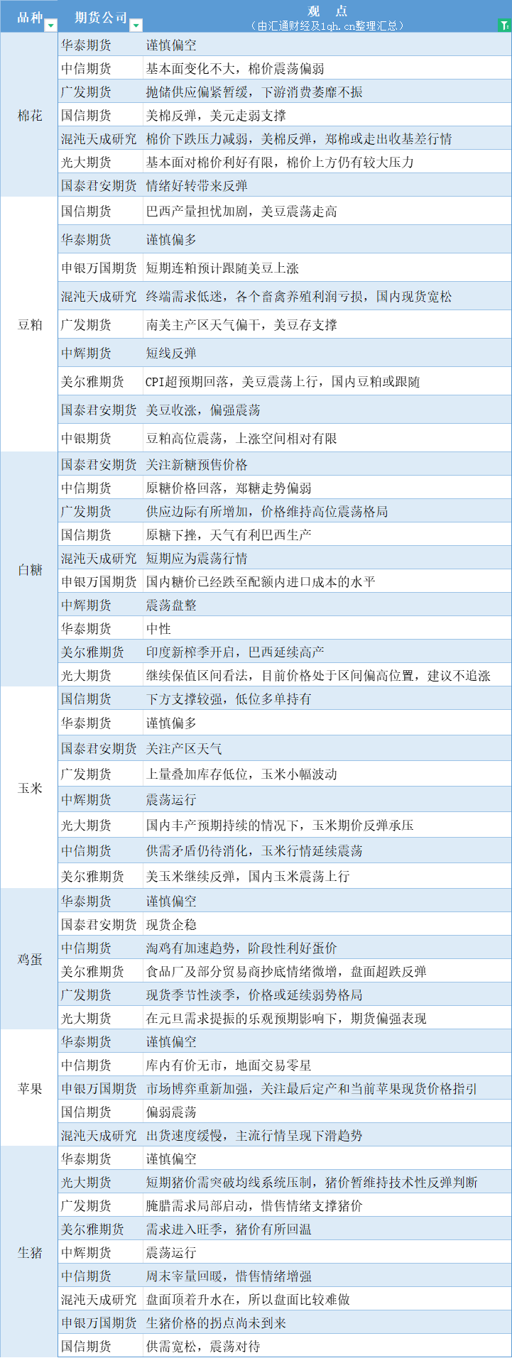 汇通财经APP讯——期货公司观点汇总一张图:11月15日农产品(棉花、豆粕、白糖、玉米、鸡蛋、生猪等)
