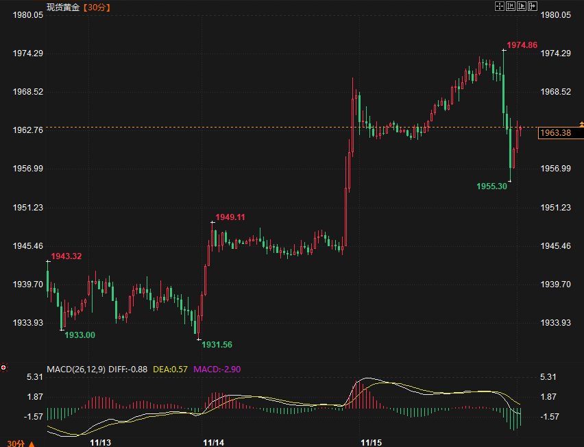 (现货黄金30分钟走势图)