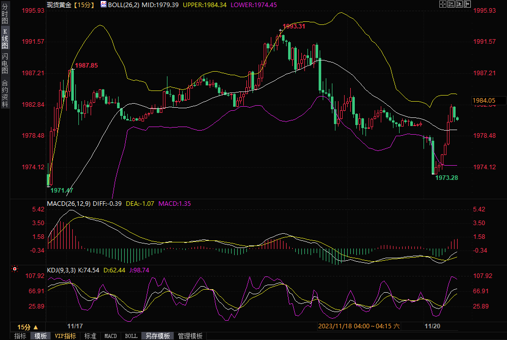 周一(11月20日)亚市盘中,现货黄金探底回升,在跌至1973美元附近后快速拉升近10美元至1983美元附近,目前交投于1981美元/盎司附近。