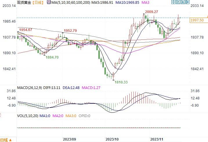 北京时间11月22日11:21 现货黄金 报 1996.50 美元/盎司