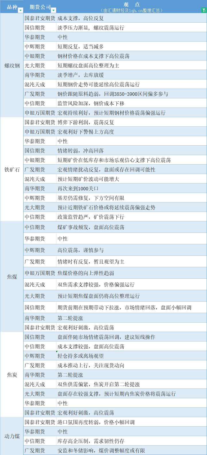 汇通财经APP讯——期货公司观点汇总一张图:11月23日黑色系(螺纹钢、焦煤、焦炭、铁矿石、动力煤等)