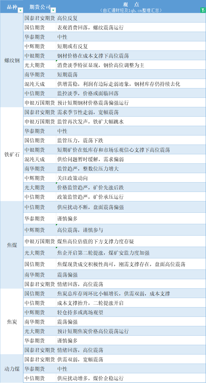 汇通财经APP讯——期货公司观点汇总一张图:11月27日黑色系(螺纹钢、焦煤、焦炭、铁矿石、动力煤等)