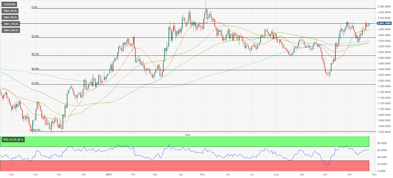 受美元走软推动,上周五(11月24日)金价突破 2000 美元/盎司,并收在这一重要关口上方。