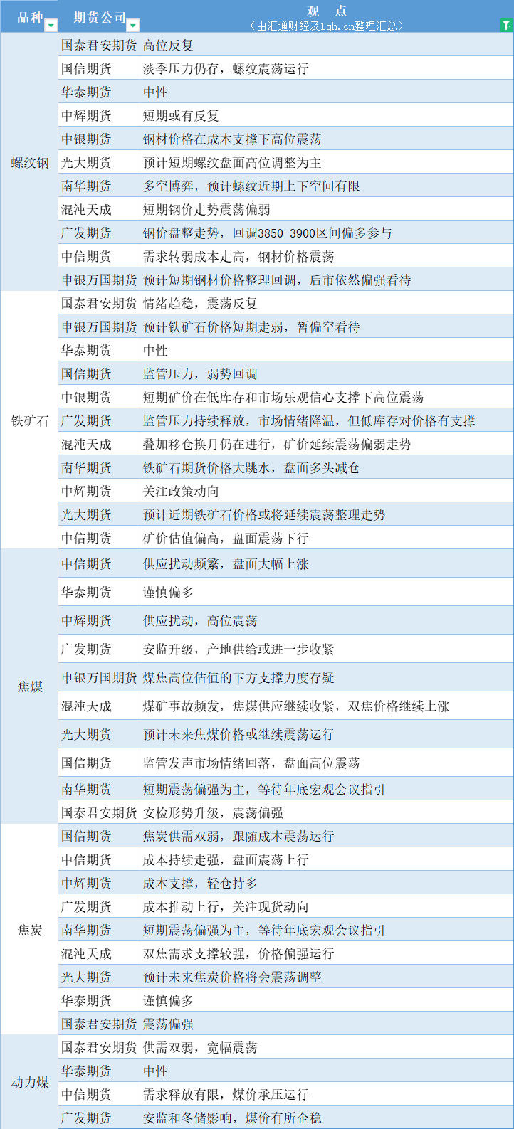 汇通财经APP讯——期货公司观点汇总一张图:11月29日黑色系(螺纹钢、焦煤、焦炭、铁矿石、动力煤等)