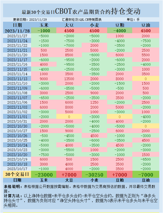 交易商估算的结果显示,大宗商品基金本周二(11月28日)增加玉米、豆粕投机性净空头头寸,增加豆油、大豆、小麦投机性净多头头寸。最近30个交易日,大宗商品基金本增加玉米、小麦、豆油投机性净空头头寸,增加豆粕、大豆投机性净多头头寸。