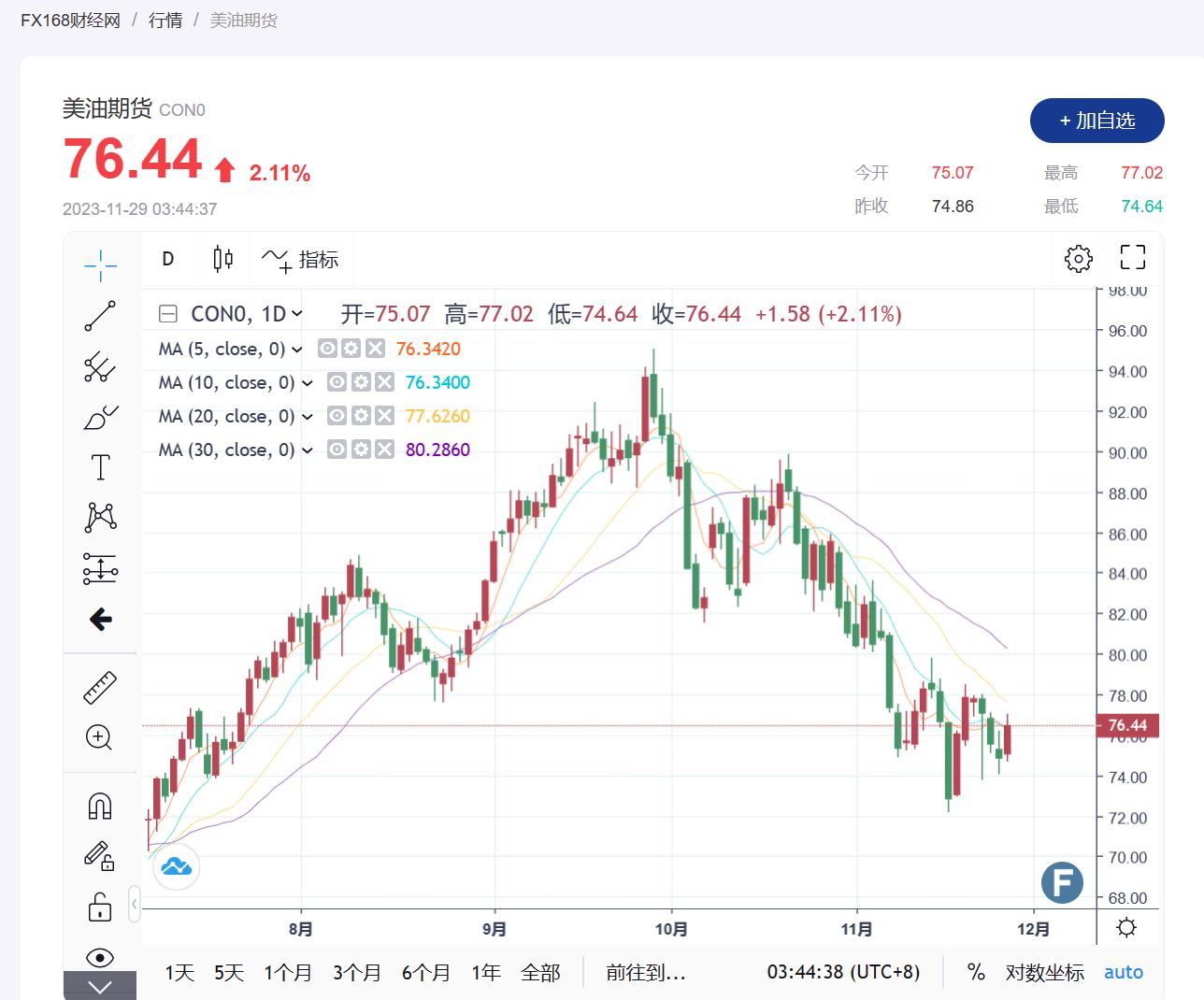 (美国西德克萨斯中质(WTI)原油期货走势图,)